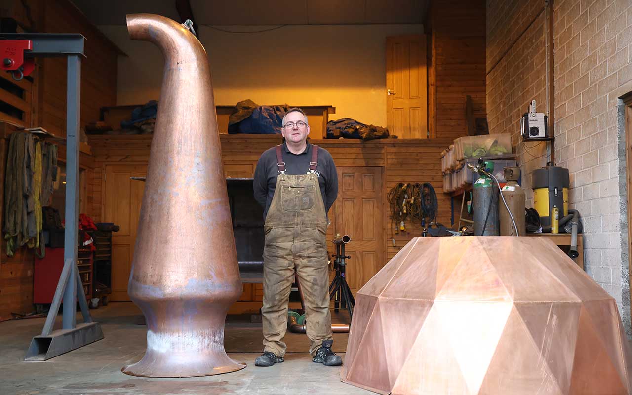 "I’ve discussed with our man in charge of the copper stills Derek Brewster, he’s been building stills for close to 40 years now and in his spare time he travels the UK fixing up all the classic steam train engines. He says he can make this shape, we could have a mixture of folded edges then the pieces would weld together like a jig saw." Garry Frazer, Speyside Copper Works.