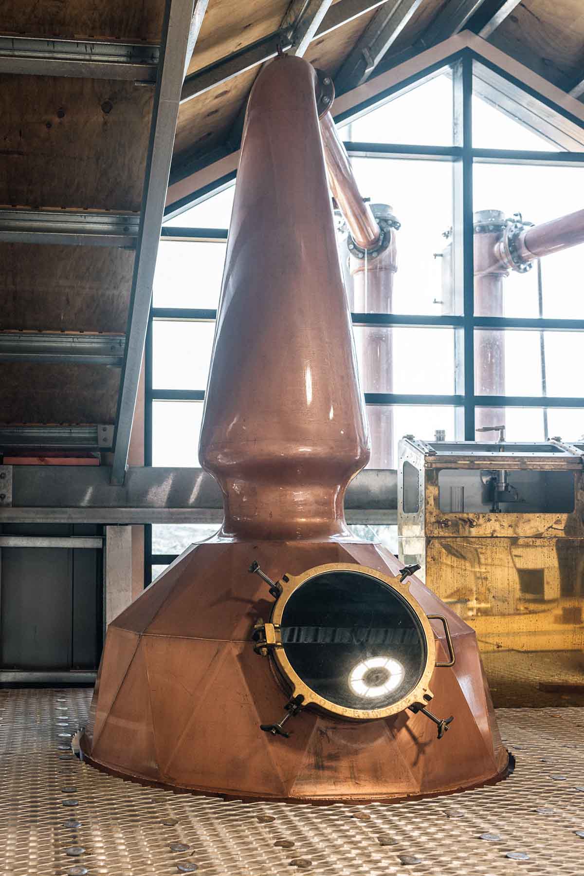 The team decided on a tadpole shaped still for the wash, predominantly for our peated character. Less reflux and a faster run with the lyne arm is pointed downwards allows more of the peaty flavour to run into the low wines.