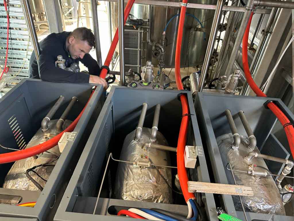 The wash still has 2 sets of steam coils, alowing for rapid heating of the wash. These are supplied by 3x electric steam fired boilers, powered by 100% renewable energy