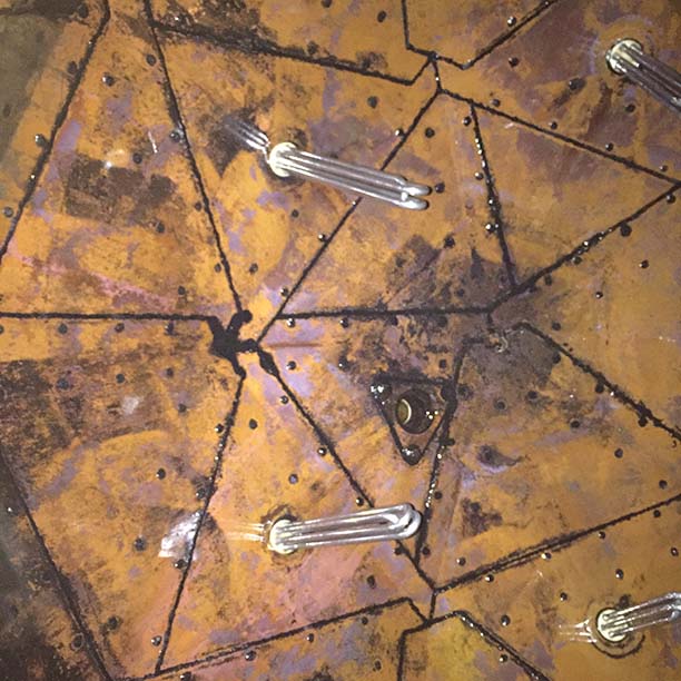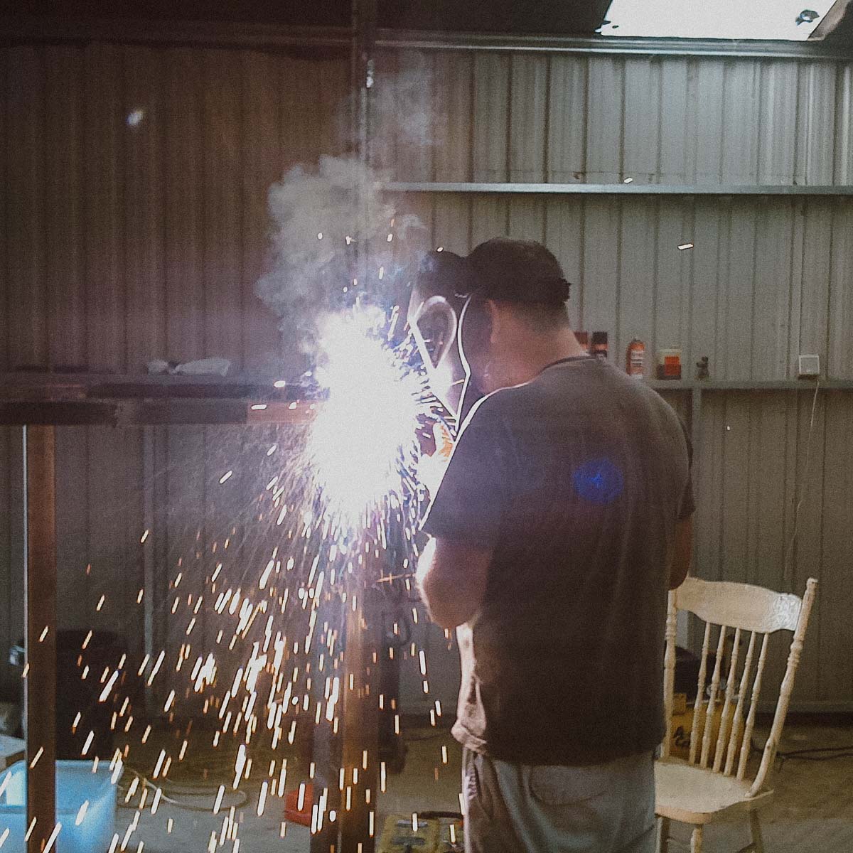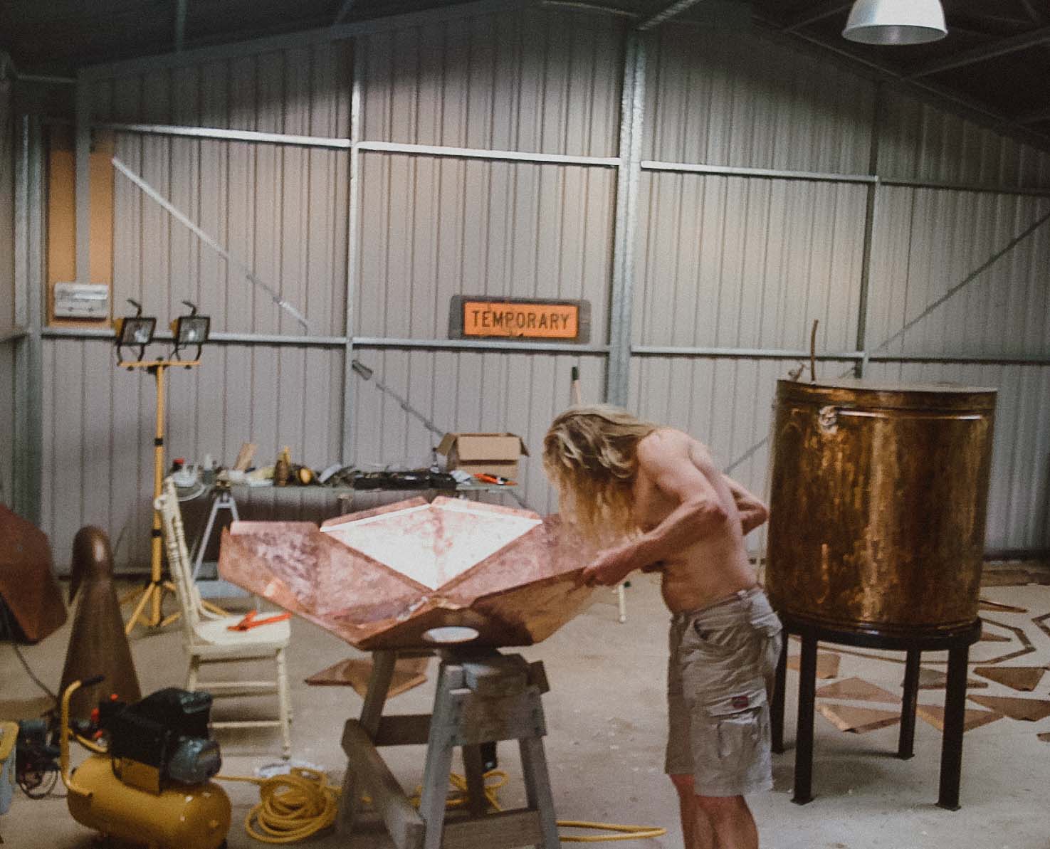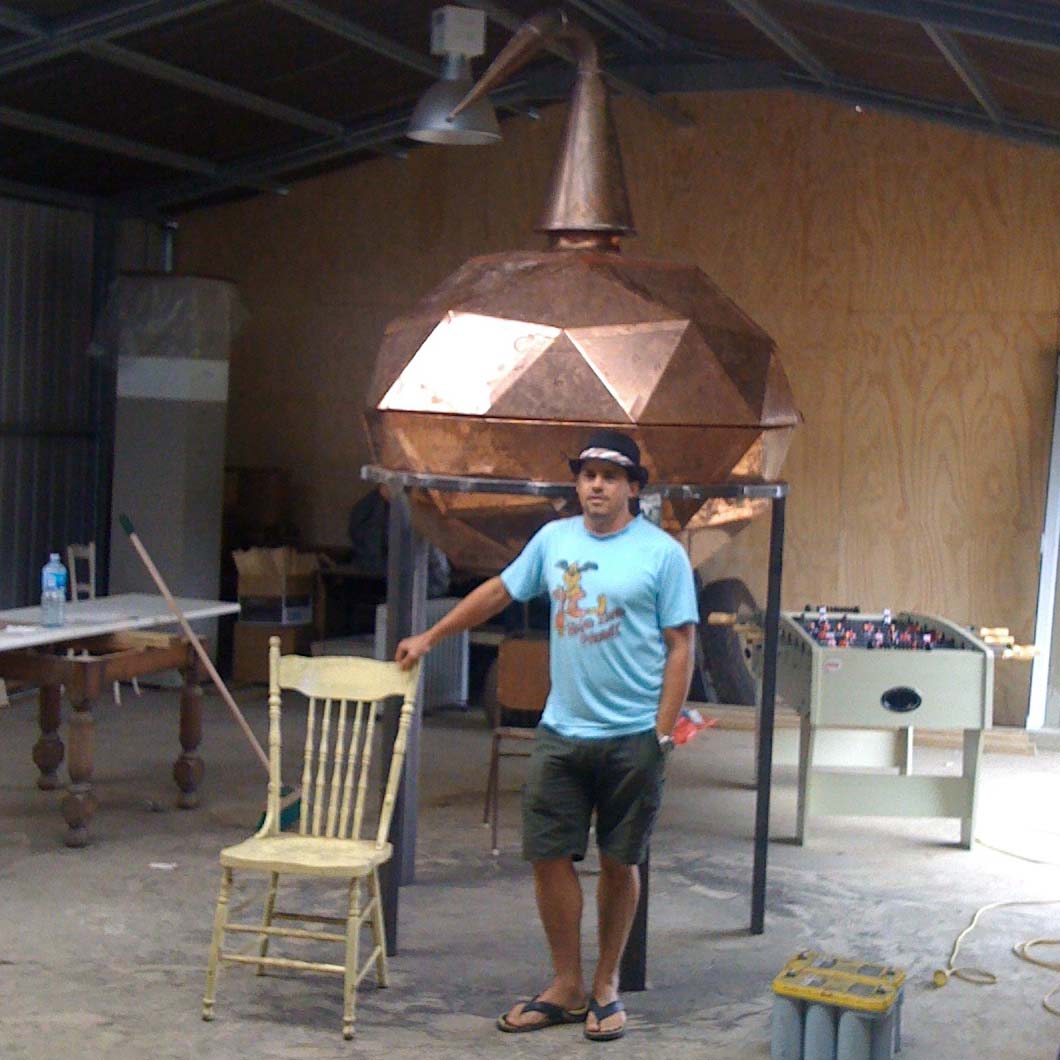 Mark welding the spirit still stand. The project was a proof of concept, but VITRIOL 1 is still standing outside the distillery door.